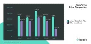 Homie asked Arizona sellers who originally considered selling to an iBuyer to share the offer price that was put forth by the iBuyer. Then, once they sold their homes through Homie, we compared the final sales prices to the original offer price from the iBuyer.